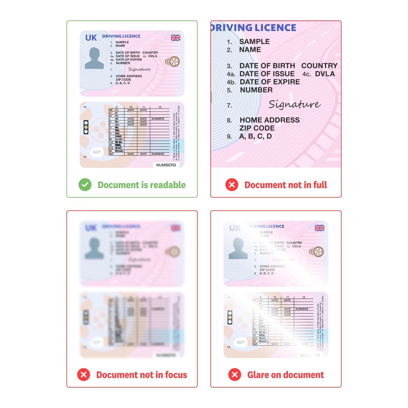 Please see the examples below for guidance on how to send us a clear and complete copy of your identification.
