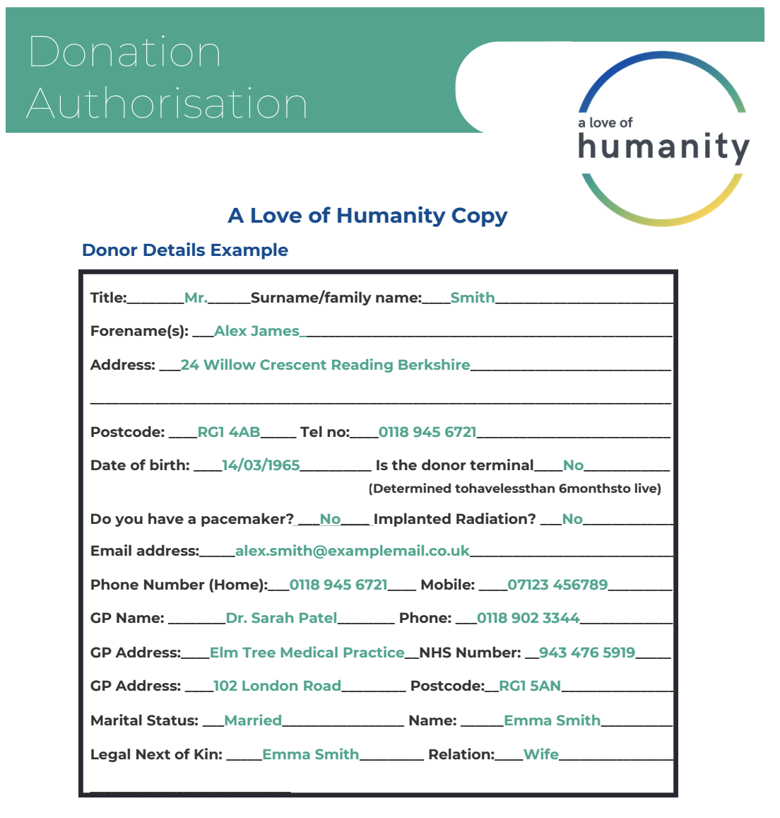 This helps us confirm the identity of all parties involved, ensures your registration documents are completed correctly, and allows us to accurately record and honour your donation wishes.